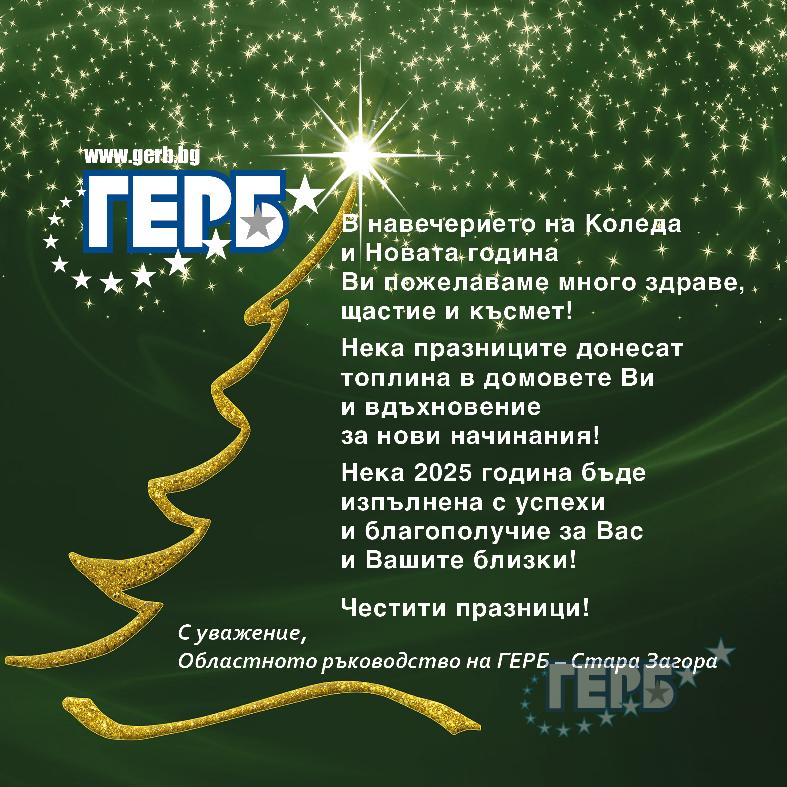 Старозагорските младежи от ГЕРБ пожелават на всички светли празници, здрава, мирна и успешна 2025 година!